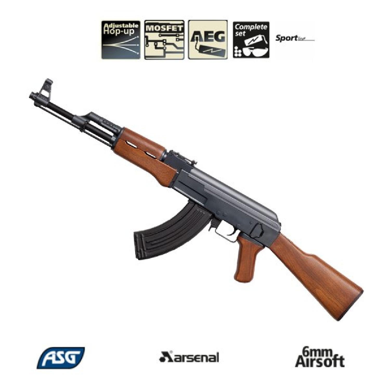 ASG AK47 SA M7, Arsenal lisansı, sentetik ahşap görünümlü dipçik ve kabza detaylarıyla klasik bir AK deneyimi sunar. Metal dış namlu, üst alıcı kapağı ve döküm nişangahlar, gerçekçiliği artırırken, dayanıklı polimer gövde hafiflik sağlar.