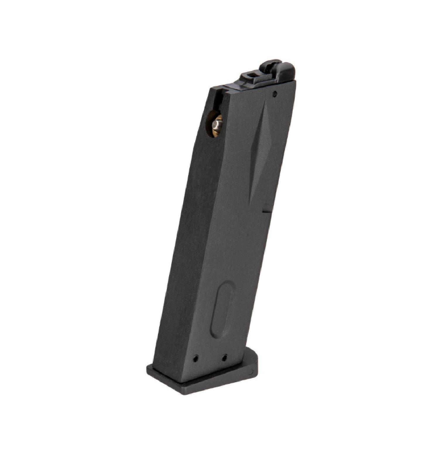 ASG’nin 12632 kodlu bu gaz şarjörü, Beretta M9A1 ve F92 GBB (Gas Blowback) tabancalarla tam uyum gösteren resmi yedek parçadır. 25 mermi kapasiteli yapısı sayesinde uzun süreli oyun deneyimi sağlar ve kesintisiz atış imkânı sunar. Üstün kaliteli metal konstrüksiyonu dayanıklılığı artırırken, yüksek gerilimli yay sistemi sayesinde BB beslemesini güvenli ve istikrarlı hale getirir. Ayrıca, hem Green Gas hem de Propan türü gazlarla çalışabilme esnekliği sunar.