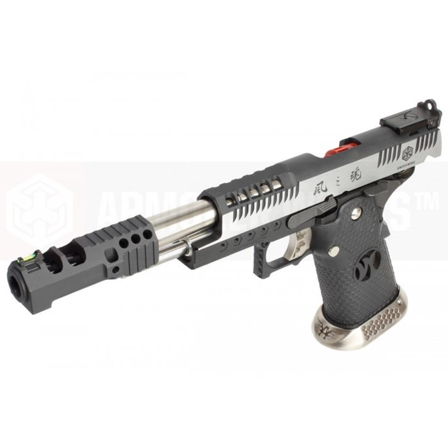 AW Custom’ın HX2401 “Wind Velocity” modeli, uzatılmış 166mm iç namlusuyla üstün çeviklik, hız ve isabetlilik sunar. Adı gibi rüzgarın hızıyla atış yapmanızı sağlayan bu tabanca, kompensatör ve namlusundaki lazer işleme ile kusursuz yüzeylere ve etkileyici bir geri tepme hissine sahiptir.
