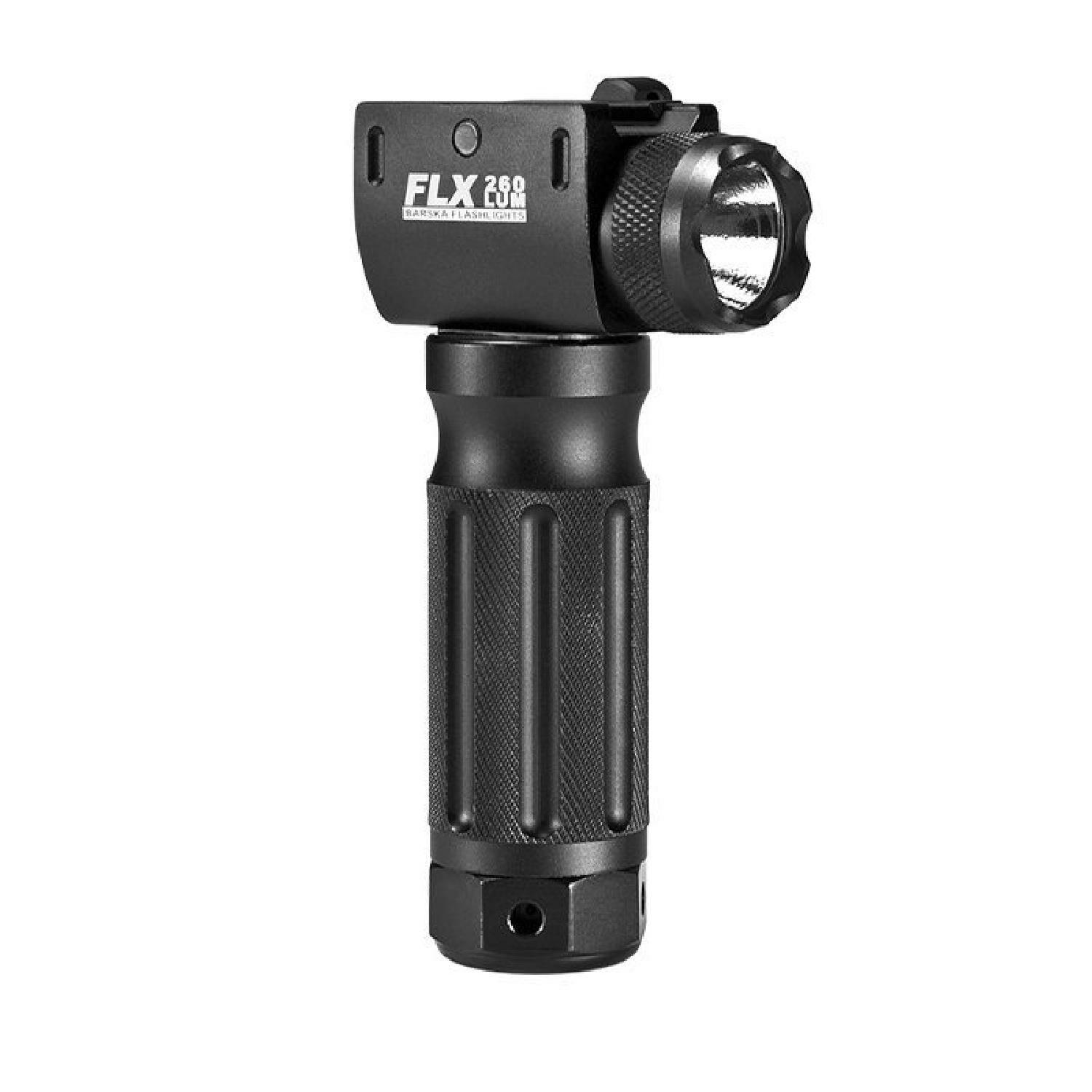 Taktik Grip FLX LED el feneri gelen Barska AR tarzı bir tüfek için çift çıkışlı bir LED ışığı dikey bir ön tutacakla birleştiren taktik bir aksesuardır. Bu kundak eki, Picatinny veya Weaver tarzı bir raya monte edilir ve operatörün silahı ile aydınlatıcıyı tek bir sistemde birleştirerek taktik manevrayı iyileştirmek için tasarlanmıştır. LED lamba tertibatının arkasında bulunan çok yönlü bir basmalı düğme, operatörün baş parmağını kullanarak FLX ışığını etkinleştirmesini sağlar. 260 lümen yüksek çıkış moduna ek olarak FLX, yakın mesafeli çatışmalar sırasında saldırganların yönünü şaşırtmak için yararlı olan Strobe moduna da sahiptir. Hava koşullarına dayanıklı muhafaza ve tırtıklı ön tutma yeri; gelişmiş silah kullanımı sağlar ve FLX LED el fenerini iyi donanımlı bir taktik aksesuar haline getirmeye yardımcı olur. olur.
