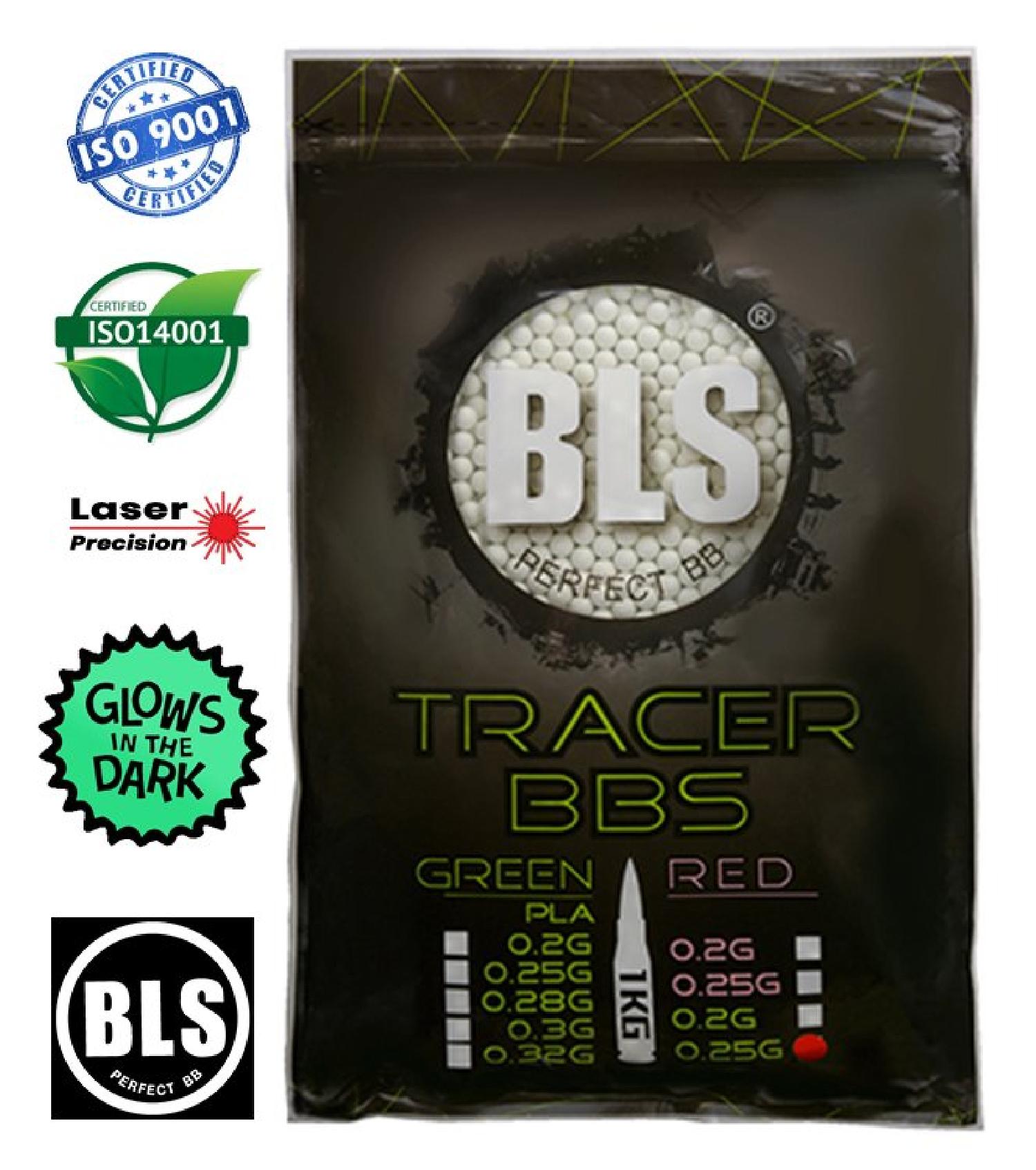 Tayvanlı BLS markası tarafından Tokyo Marui, Eliteforce, Valken, Madbull, Maruzen ve KWA gibi dünyaca ünlü markalar için lazer sistemli tam otomatik üretim hatlarında üretilen ve hassas namlularda gönül rahatlığıyla kullanılabilecek Perfect Tracer BB‘lerin çapları 5,95 mm +/- 0,01 mm.