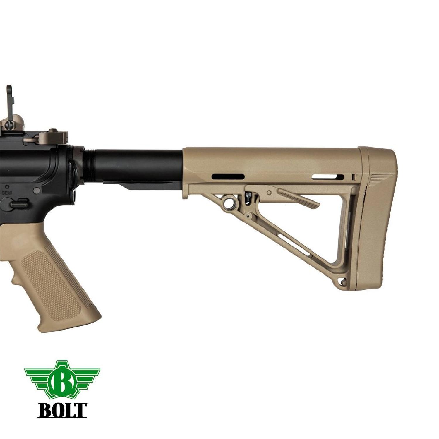 İki bağımsız öğeden oluşur: çoğu EBB kopyasından bilinen boltun standart bir kopyası ve dipçik kılavuzunun içine monte edilmiş apayrı bir sistem! Bu sistem bir yay, bir dirsek ve pistondan tüfeğe enerji aktaran bir tasarımdan oluşur. Bu çözümle ortaya çıkan tepme kuvveti ise, daha önce AEG replika üreticileri tarafından sunulan hiçbir şeyle kıyaslanamaz. Blow Back sisteminin kullanılmasından kaynaklanan bazı tasarım farklılıklarına rağmen, replika, TM lisanslı V.2 Gearbox standardıyla büyük ölçüde uyumludur. Tek önemli fark, karakteristik bir kesime sahip pistondur. Bununla birlikte, önemli ölçüde dayanıklılığını garanti eden bir dizi metal dişli ile donatılmıştır. Gearboxun diğer parçalarının uyumluluğu, replikanın kolay modifikasyonunu sağlar, 6.02 mm hassas namlu ile birlikte yüksek kaliteli Hop-Up odacığı her atışta mükemmel performansı garanti eder.