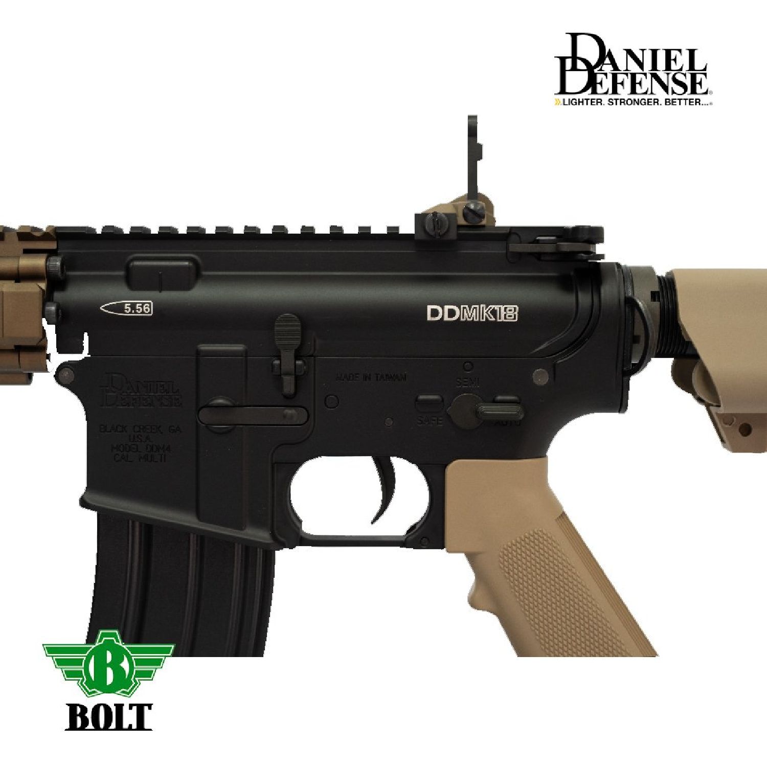 - Tam metal gövde ve namlu tertibatı, Lisanslı Daniel Defense® RIS II Ray ve DDMK18® işaretleri
