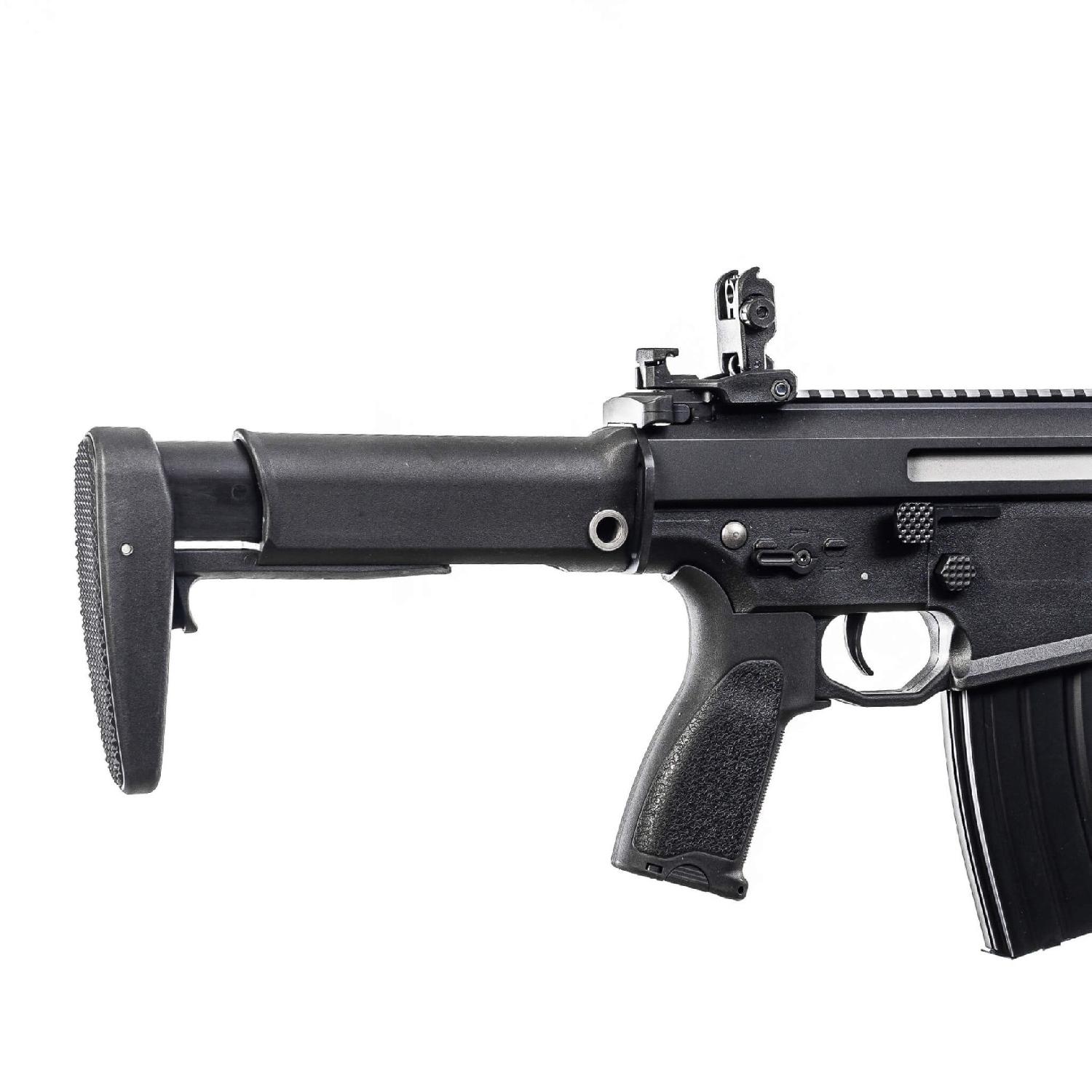 Polimerden üretilmiş ayarlanabilir dipçik ve kaymaz ergonomik pistol grip, uzun süreli kullanımda konfor sağlar. Flip-up gez ve arpacıklar, ihtiyaç duyulduğunda katlanarak optik kullanımına uygun hale gelir.