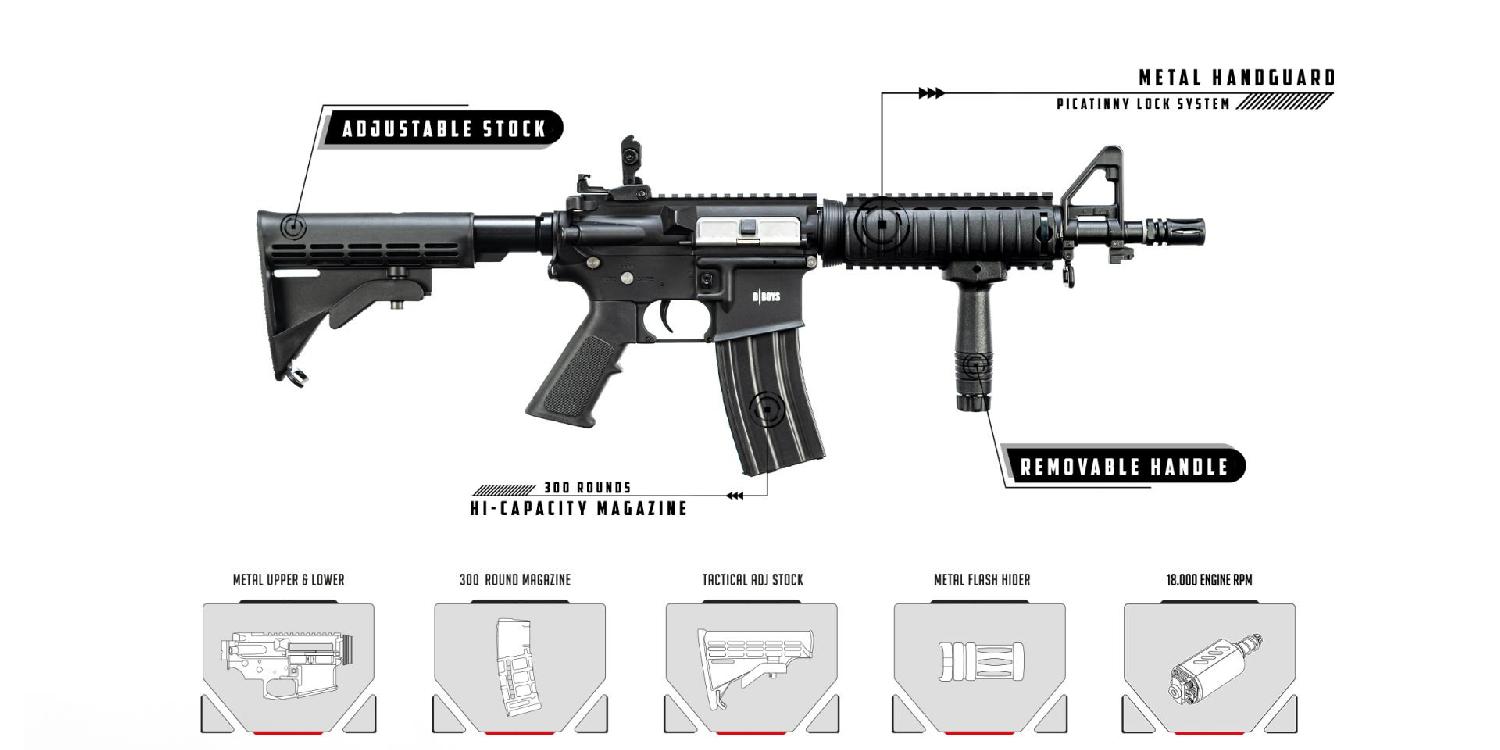 DBOYS M4 10” L-Type Metal KeyMod AEG, profesyonel airsoft oyuncularının beklentilerini karşılamak için tasarlanmış, dayanıklı ve modüler bir tüfektir. Metal KeyMod el kundağı, hem hafiflik hem de aksesuar montajı için geniş olanaklar sunar.