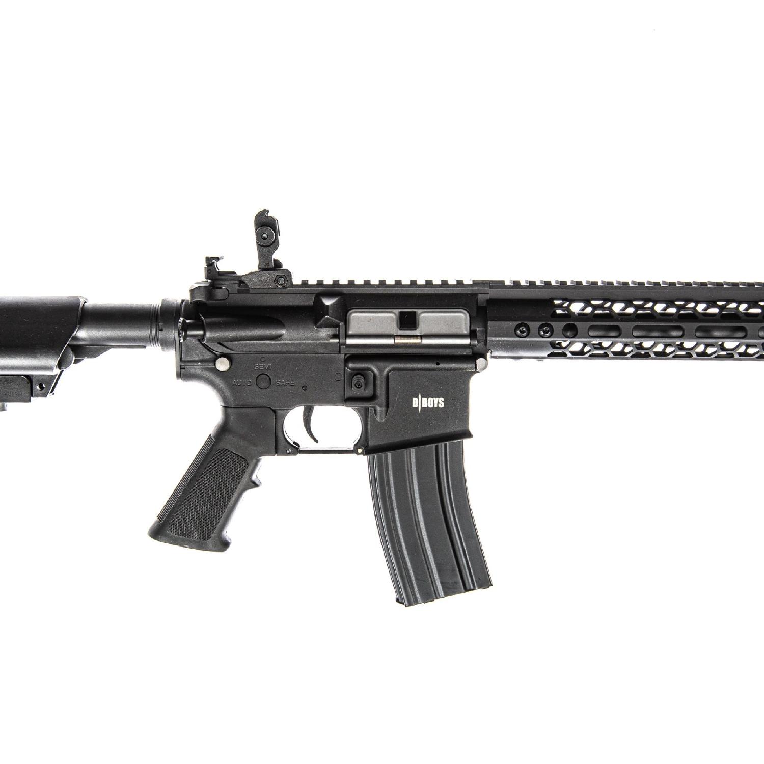 DBOYS M4 12.5” Hex Long AEG, hem görünüm hem de işlevsellik açısından etkileyici bir modeldir. Hafif polimer gövde yapısı sayesinde uzun süreli oyunlarda yorulmadan kullanım sunarken, metal dış namlu ve siyah flaş hider ile sağlamlık ve gerçekçilik katılmıştır.