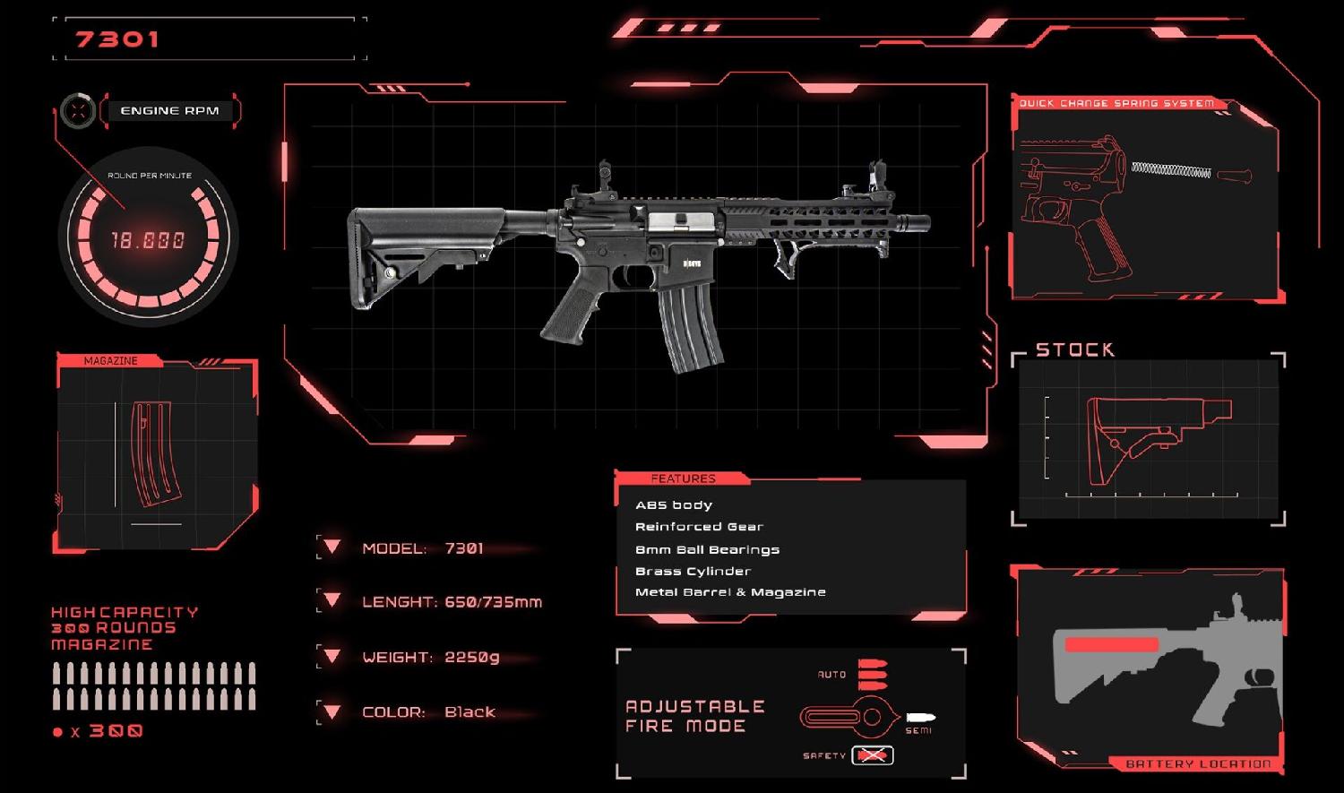 • Şarjör: 300 BB kapasiteli metal M4 tipi