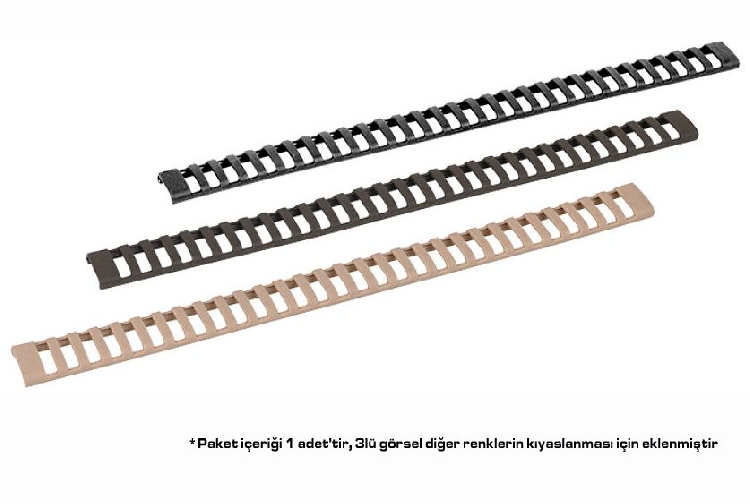 - Geliştirilmiş silah kontrolü ve ray koruması için kauçuksu bir yüzey sağlar.