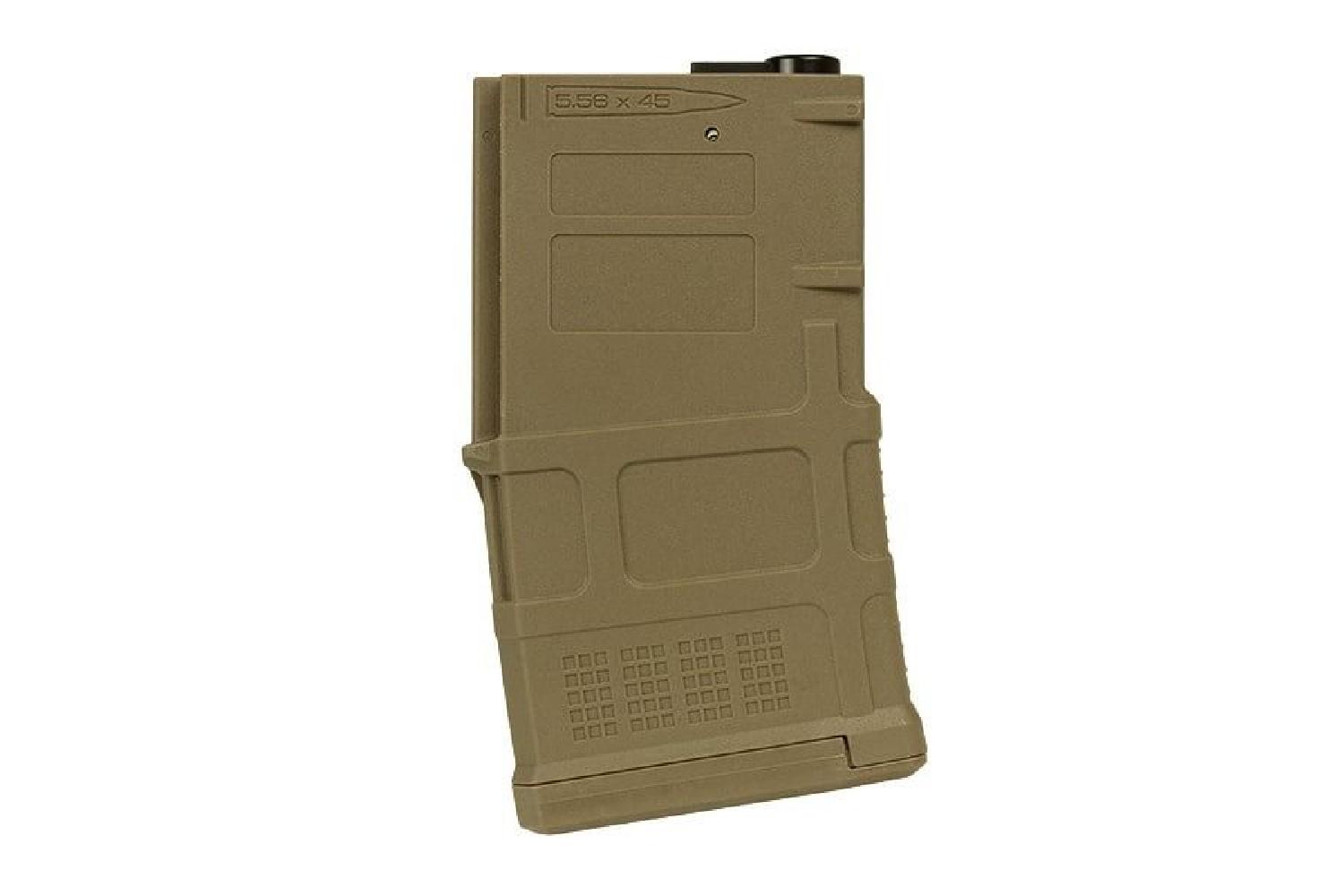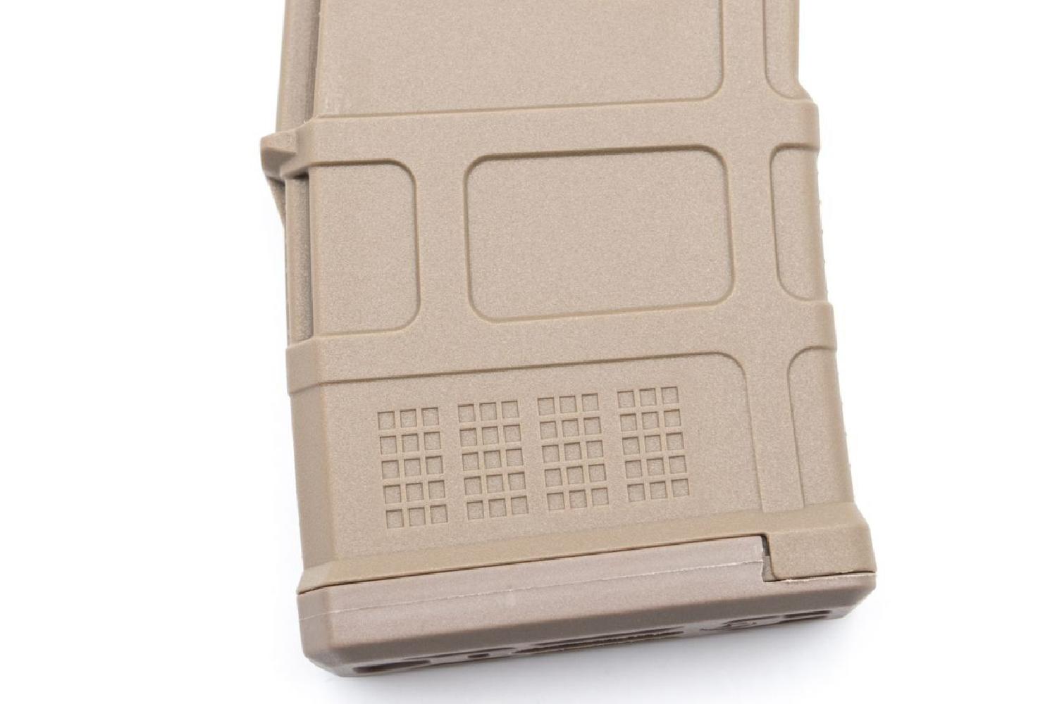Dayanıklı polimer gövde ve titizlikle tasarlanmış yay mekanizması, sessiz ve güvenilir besleme performansı sunar. Kompakt formu sayesinde silahın dengesi korunurken, renk uyumu tan camo ya da desert temalı sistemlerle estetik bütünlük sağlar.