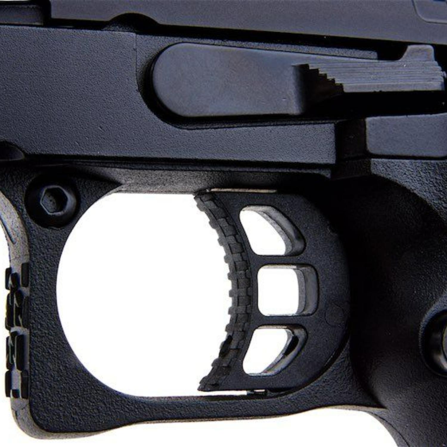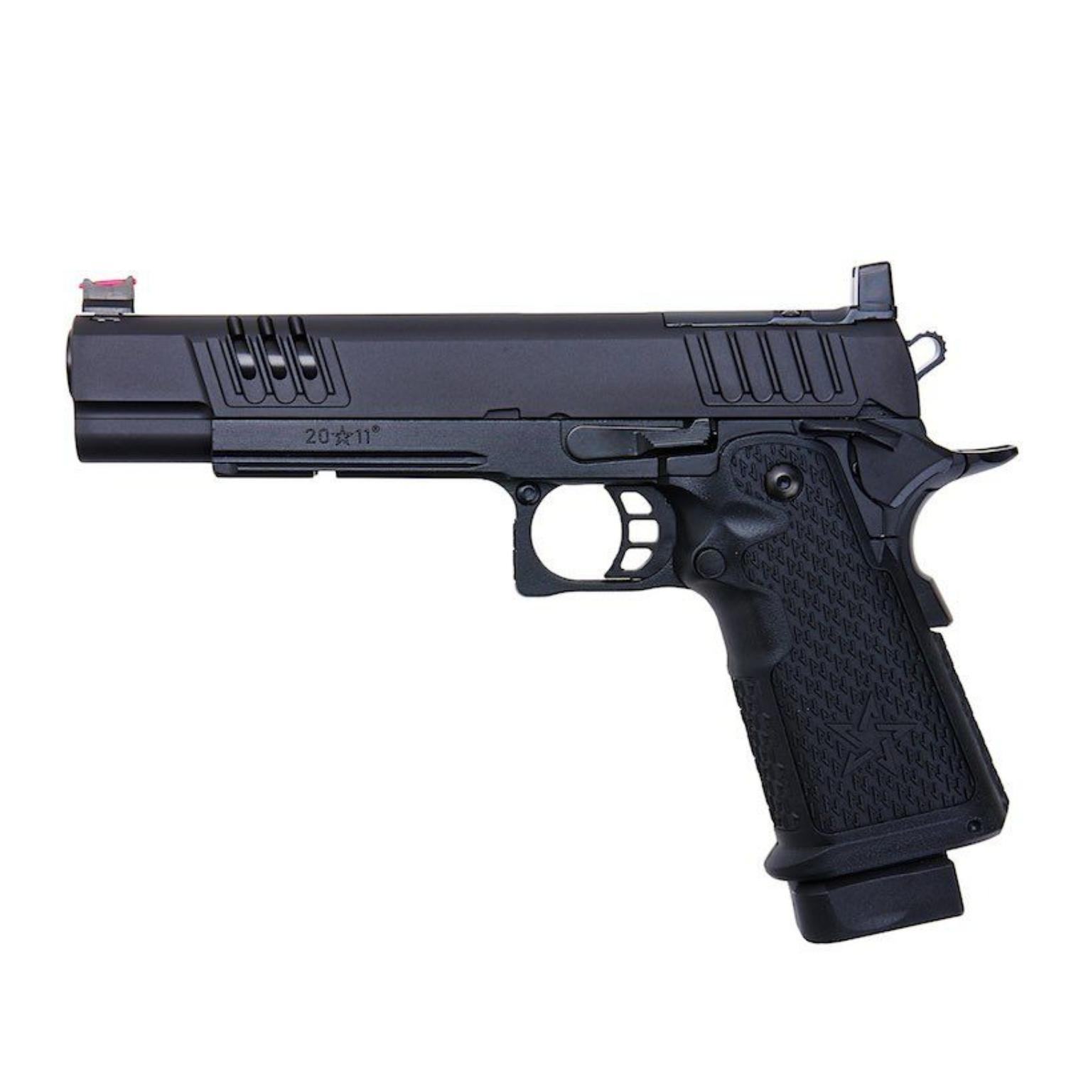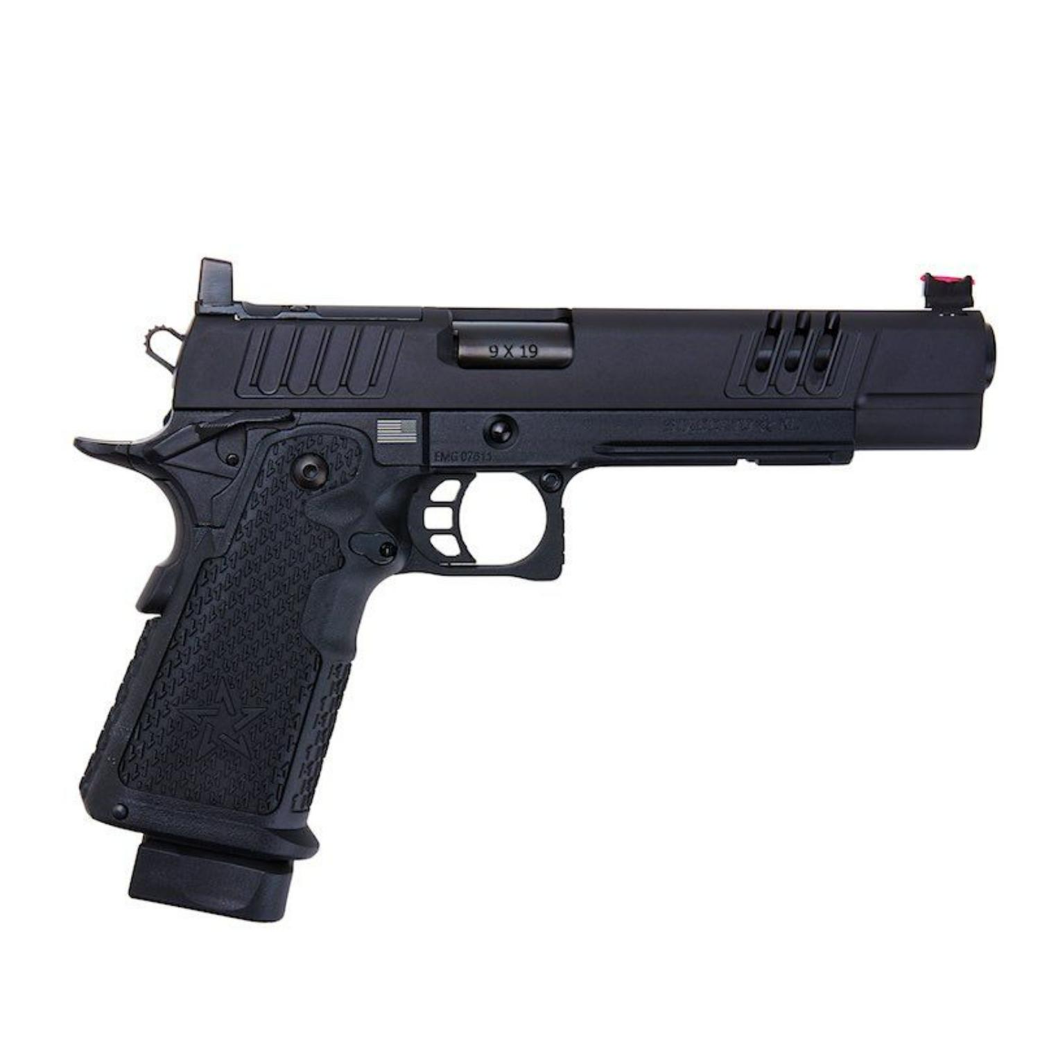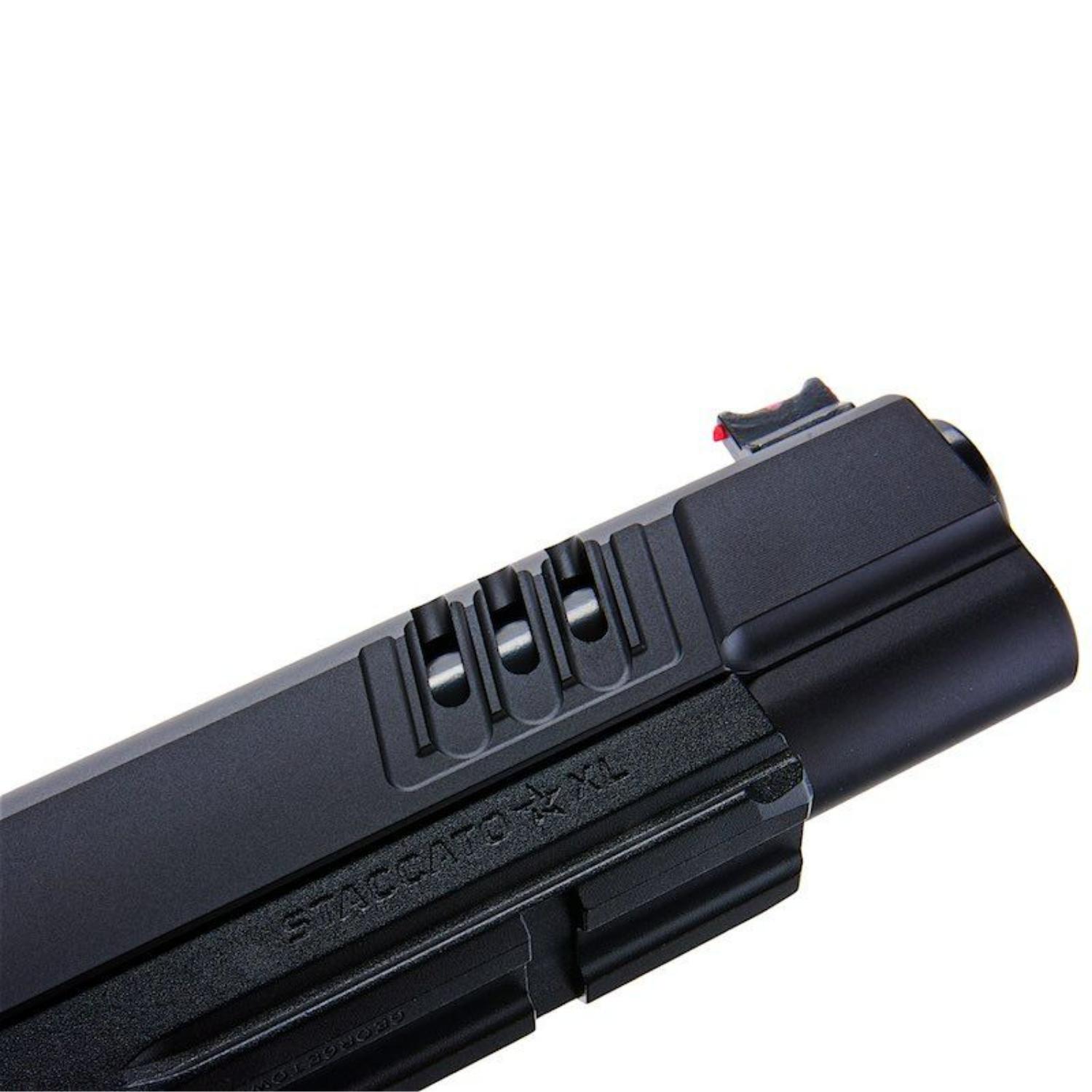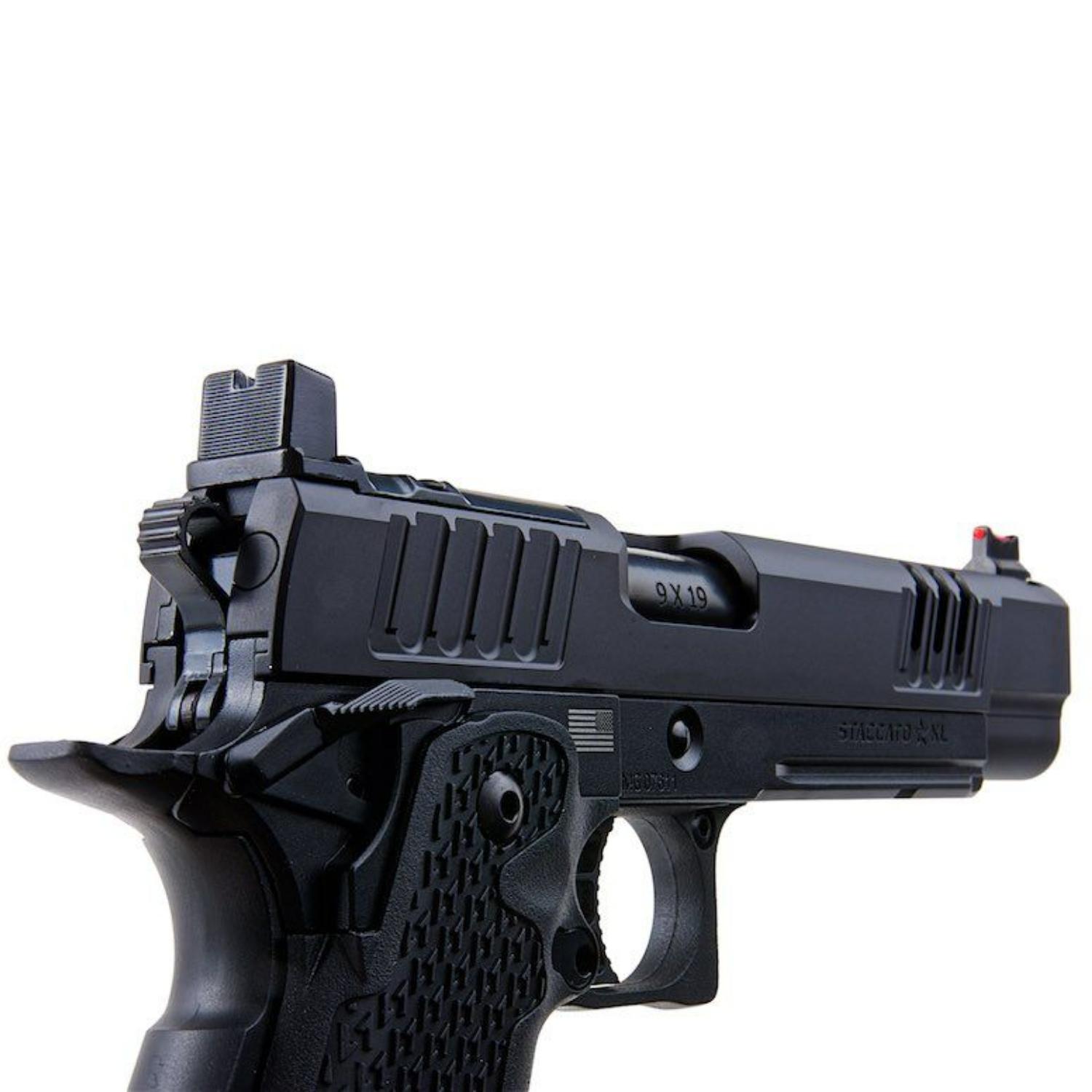 Staccato XL, en üst düzey yarışmacı olarak bilinir! Yüzlerce USPSA, 3-Gun ve Tactical Games deneyimiyle Staccato XL, kişisel en iyisini yakalamak isteyen menzil ve yarış atıcıları için mükemmel bir tercihtir. Staccato XL, ağırlığı, hızı ve hassasiyetiyle popülerdir. XL, sürgünün ön ve arka kısmında geniş hafifletme kesikleriyle üretilmiş olup, sürgüyü geri çekerken üstün tutuş, azalmış geri tepme ve geliştirilmiş çalışma hızı sağlar. Ayrıca, sürgünün ön ucu daha da geliştirmek için portlanmıştır! Sürgü, fiber optik ön nişangah ve refleks nokta nişangah takıldığında bile işlevselliği devam ettiren yüksek arka nişangah ile donatılmıştır. XL metal gövde, daha gerçekçi bir görünüm ve his için sağlam ve dengeli bir yapıya sahiptir ve favori ışıklarınız veya lazerleriniz için namlu altı aksesuar rayı içerir. Önceden takılı el ile kabartmalı polimer tutamak, rahat ve güvenli bir kavrama sunar. Diğer özellikler arasında iskeletleşmiş tetik ve dokulu tetik muhafazası yer alır; bunlar ateşleme sırasında daha fazla stabilite sağlar. Üzerindeki gerçek lisanslı logolar, desenler ve Staccato damgaları ise bu ürünü tamamlayan detaylardır.