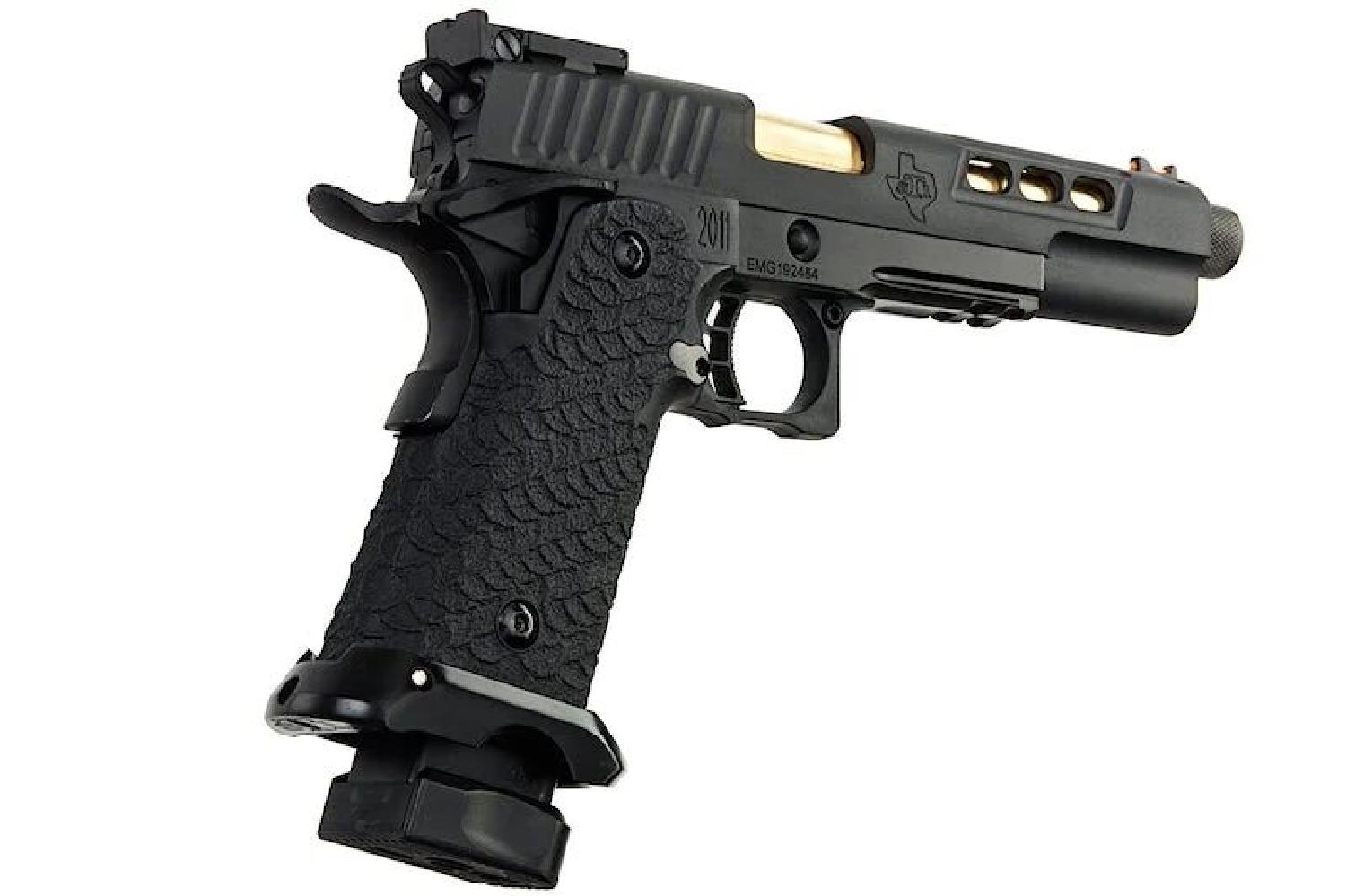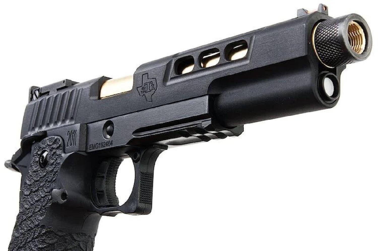 EMG, STI ile yaptığı yeni iş birliği projesini gururla duyurur: STI tabancalarının yüksek detaylı, kaliteli eğitim versiyonlarını Airsoft için sunmak. Bu tabancalar, gerçek muadilleriyle görünüm ve his açısından birebir uyum sağlamak üzere sıkı toleranslarla üretilmiştir. Uzman teknisyenler, eğitim replikasının gerçek tabanca gibi iyi hissettirmesi ve net atış yapması için ayarlamalara titizlikle dikkat eder. Tetik ultra hafif ve hızlıdır, bu da hızlı çalışan slide ile mükemmel uyum sağlar. Polimer kabzalar, STI’nin DVC Stippling desenini taklit edecek şekilde kalıplanmıştır; bu agresif, dalgalı kesim stili hem konforlu hem de atıcının sağlam bir tutuş sağlamasında son derece etkilidir.