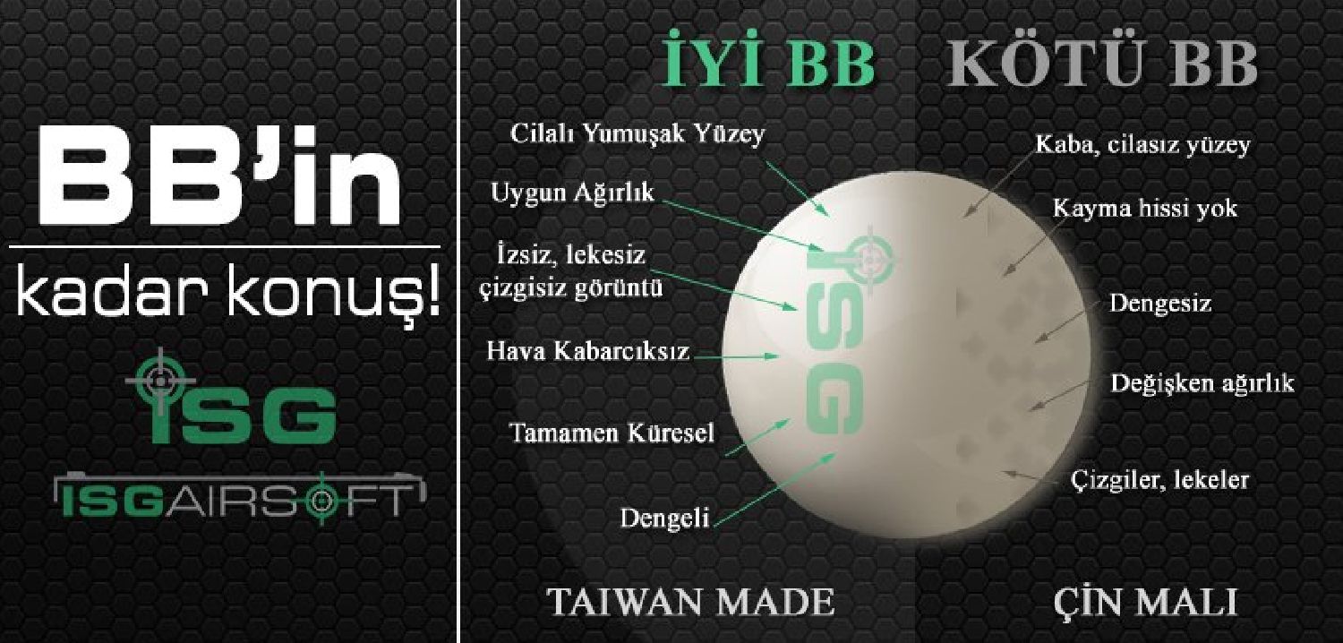 ISGairsoft’un ilk üretimi olan Türk Airsoft severlere özel üretim yüksek kaliteli BB’lerdir. Mükemmel cilalanmıştır.