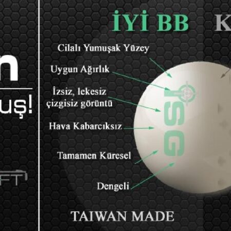 ISGairsoft’un Tayvan’daki 25 yıllık en büyük BB mermi fabrikasında, Türkiye’deki airsoft poligonların özel ihtiyaçları düşünülerek ürettirdiği gramaj ve yapıdaki serisidir.