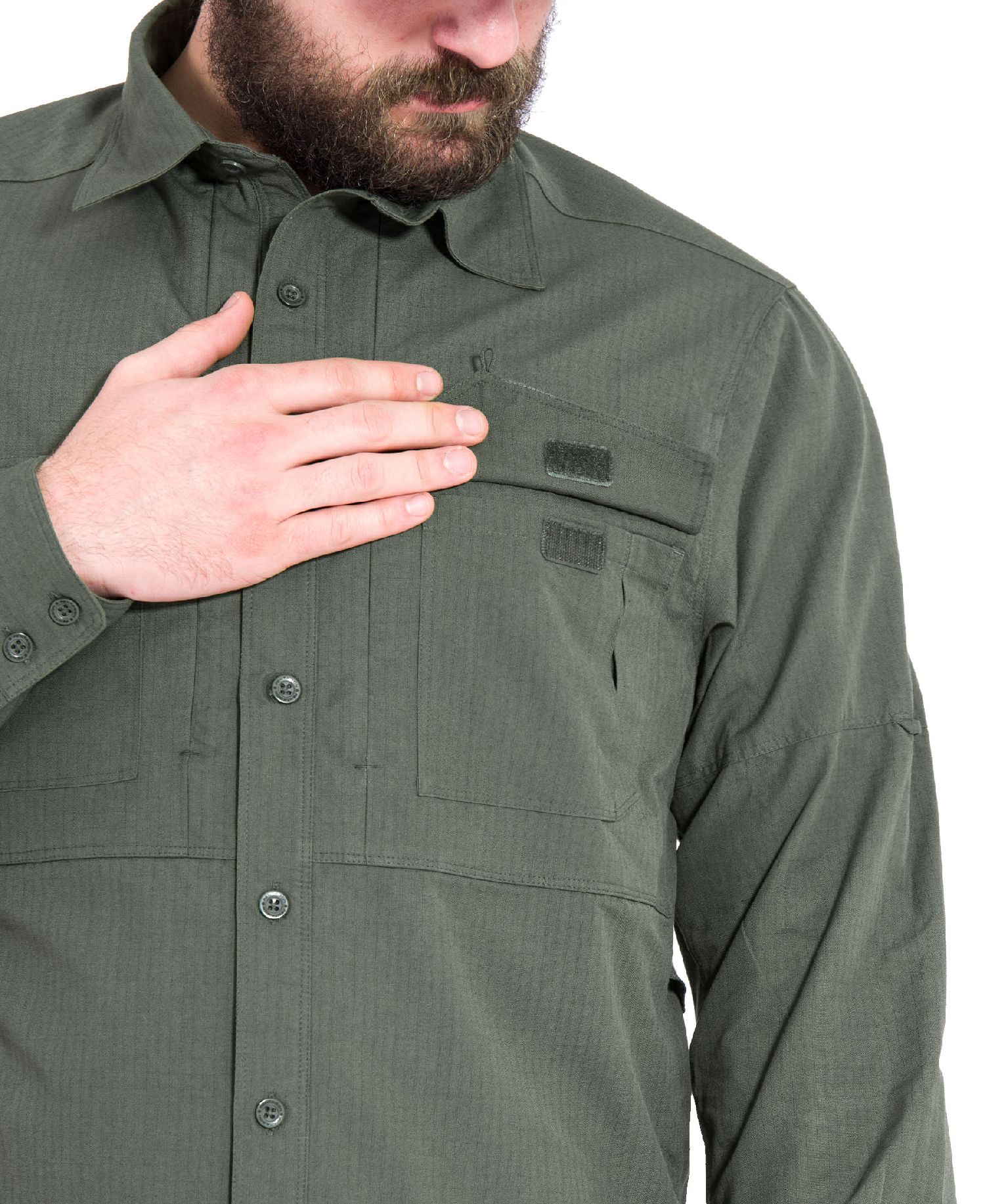 - Üstün uyum ve profesyonel görünüme sahip taktik uzun kollu gömlek