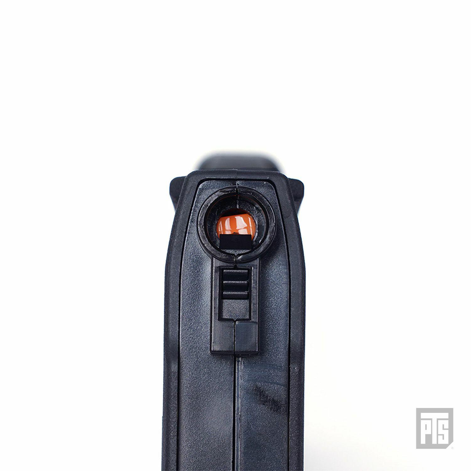 Şarjör tamamen dolduğunda, şeffaf mermi penceresinin tabanında turuncu bir takipçi belirir. Bu, EPM’ye özgü dikkat çekici bir tasarım özelliğidir; kullanıcı herhangi bir EPM şarjörünü alıp hemen şarjörün tam dolu ve kullanıma hazır olduğunu anlayabilir. Ayrıca şarjör doldurma işleminin ne zaman durdurulacağını görsel olarak bildirir.