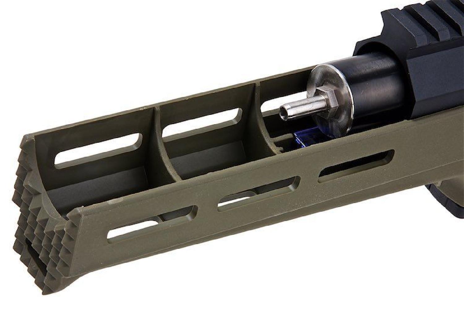 - Namlu uzunluğu: 330 mm, 6.05 çapında pirinç AEG tipi