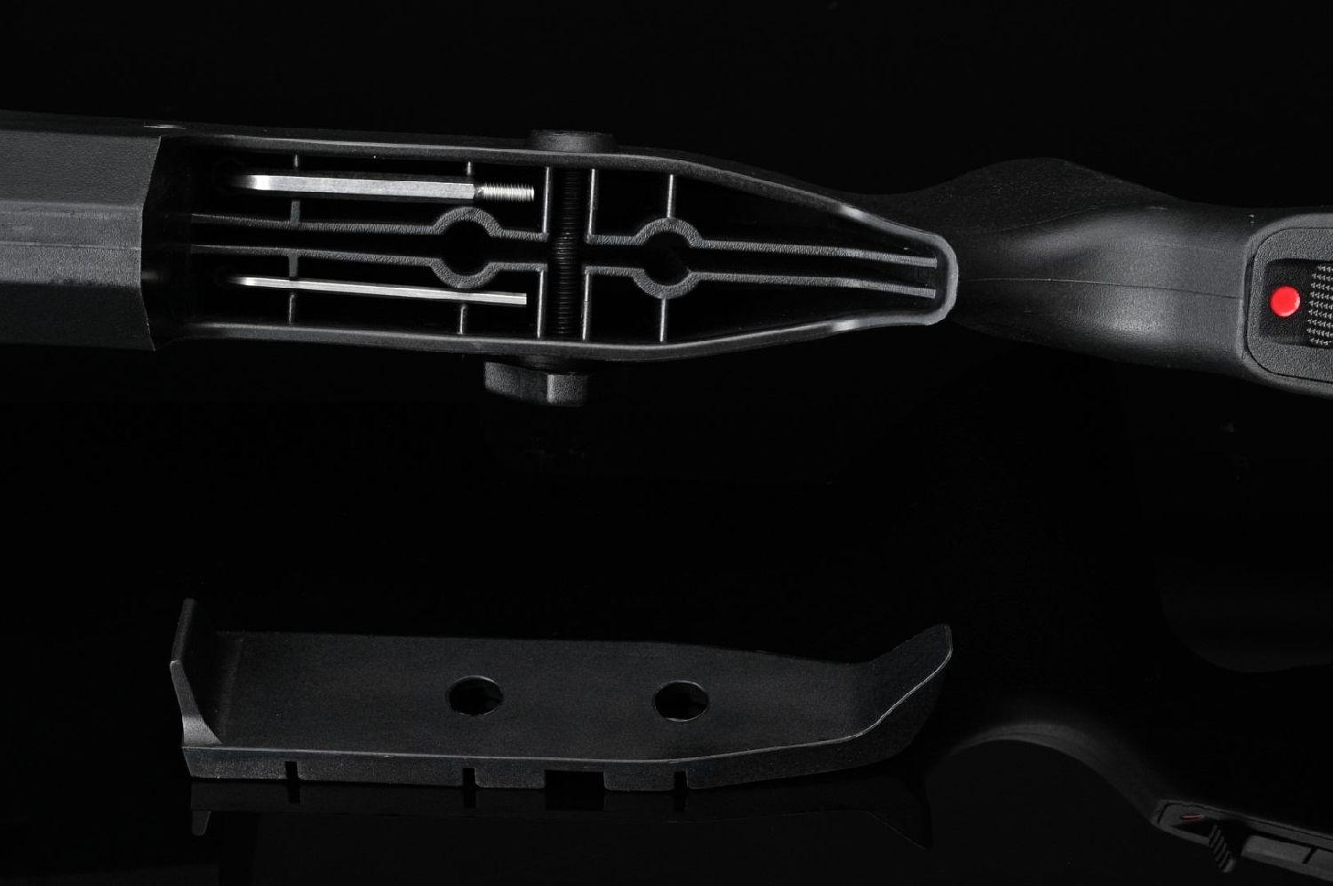 - Tamamen çift taraflı kullanım için tasarım (cıvata kolu, şarjör mandalı, emniyet, yanağa dayanak ayarı, hop-up ayarı)