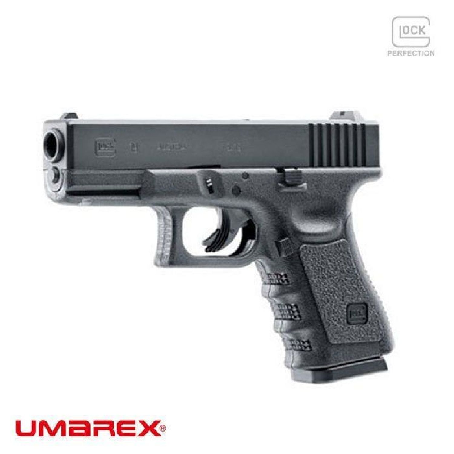 GLOCK 17’nin küçük kardeşi olan UMAREX Glock 19 Gen3, kompakt yapısına rağmen yüksek performansı ile öne çıkar. 186 mm uzunluğundaki bu CO₂ airsoft tabanca, ağır metal sürgüsü ve orijinalindeki gibi tetik emniyeti ile gerçekçi bir kullanım hissi verir. 6 mm BB’leri 2 joule’e kadar enerjiyle atan modelin kabzasında CO₂ kartuşunu yerleştirmek için pratik bir anahtar bulunur. 717 gram ağırlığı sayesinde elde sağlam bir tutuş sağlar ve gerçekçi bir deneyim sunar.