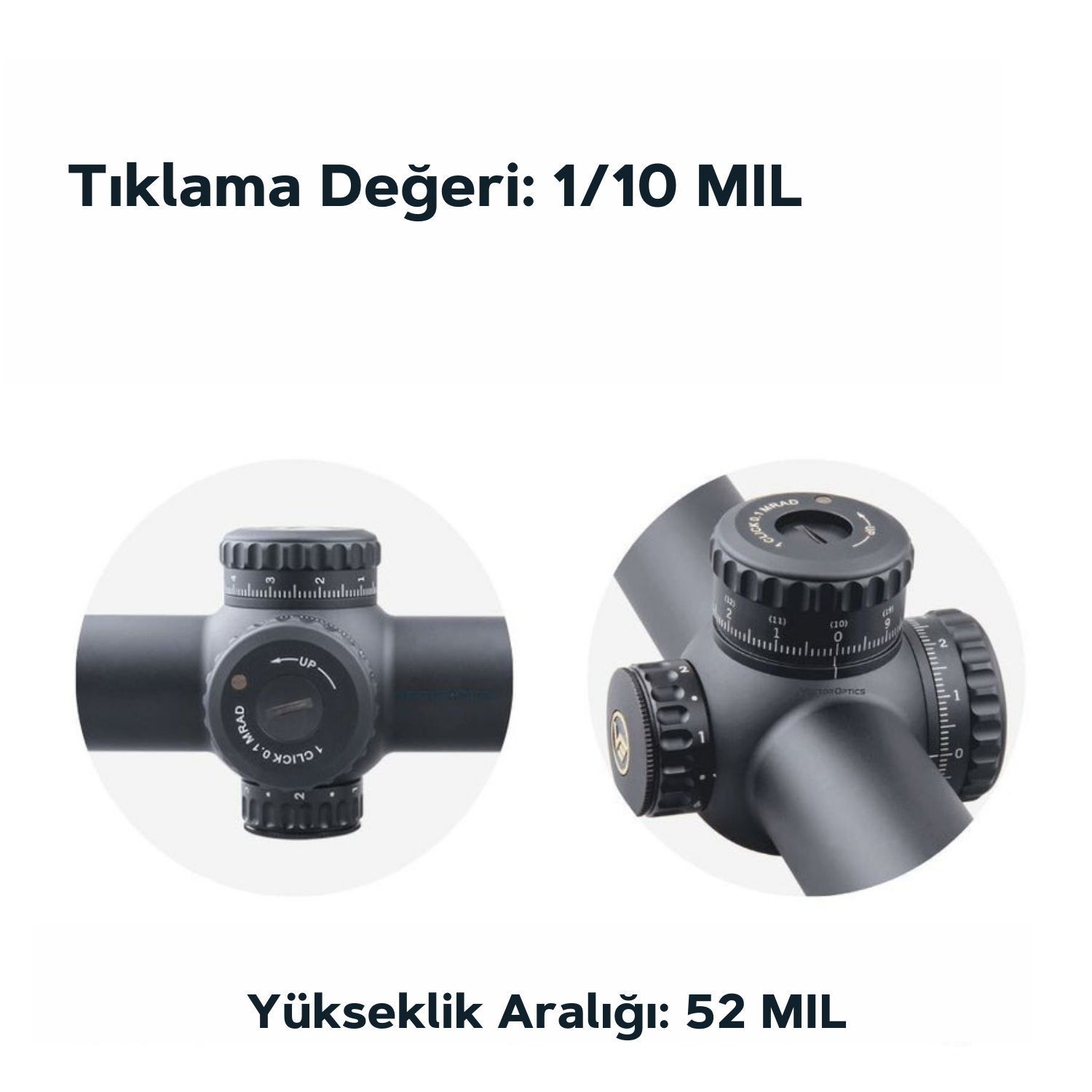 | Paket İçeriği | Bir çift 34mm Picatinny dürbün halkası, yedek yükseklik taret (sıfır noktası kilidi olmadan), güneşlik, kullanım kılavuzu, lens kapakları ve temizlik bezi. |