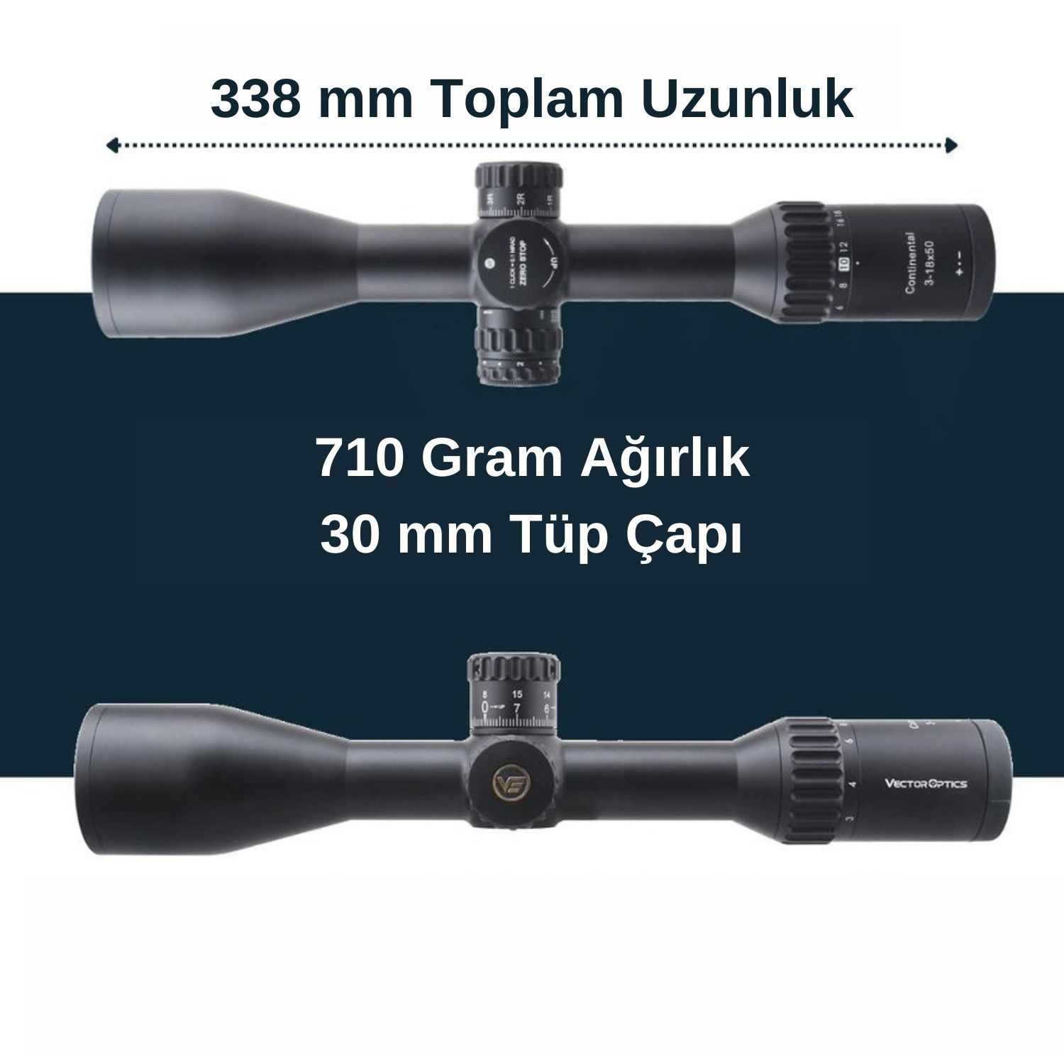 - 50 mm büyük objektif lens, 30 mm tek parça tüp ile uzun menzilli hassasiyet için maksimum yükseklik ve rüzgar ayarı