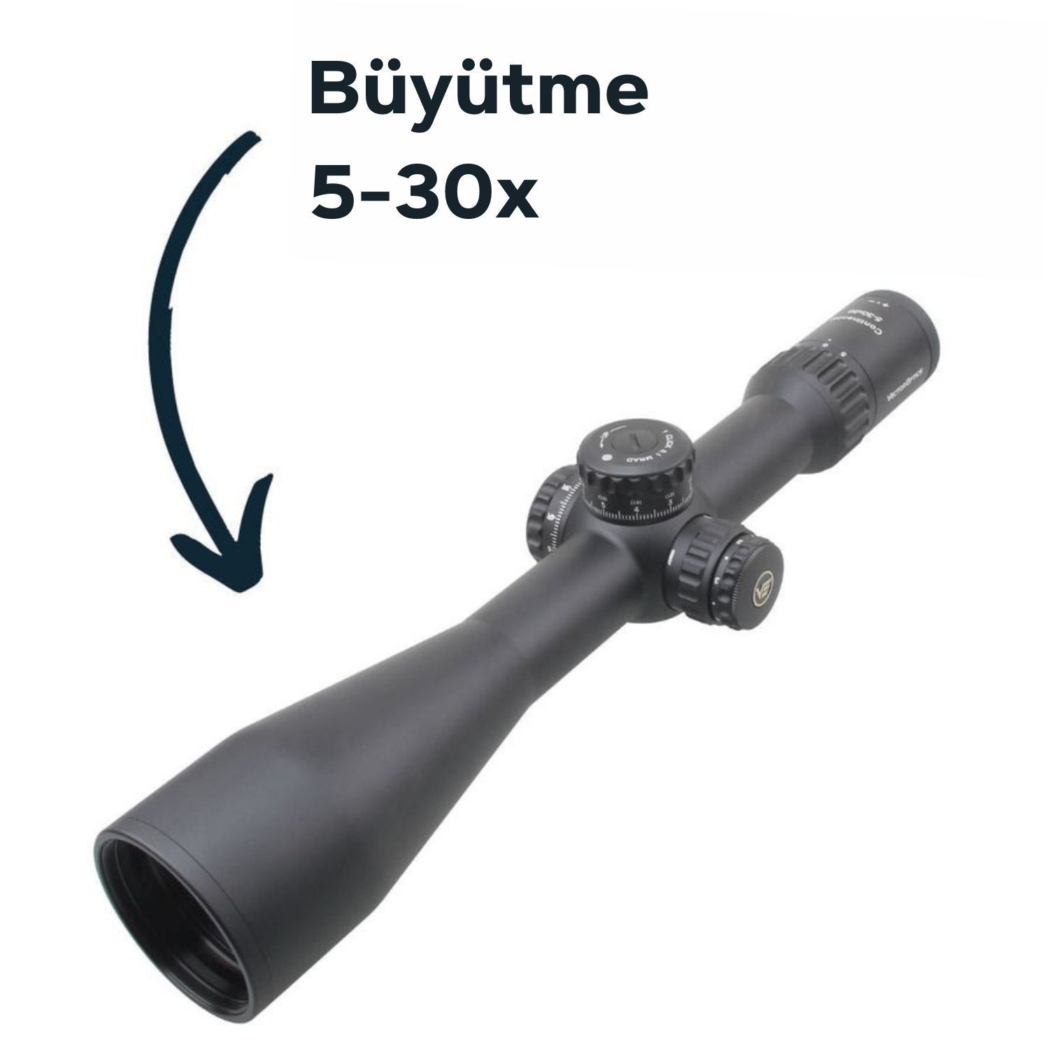 VEC-MBR işlenmiş cam retikül, yüksek doğruluk için tasarlanmış olup Lapua Magnum .338 geri tepmesine dayanıklıdır.