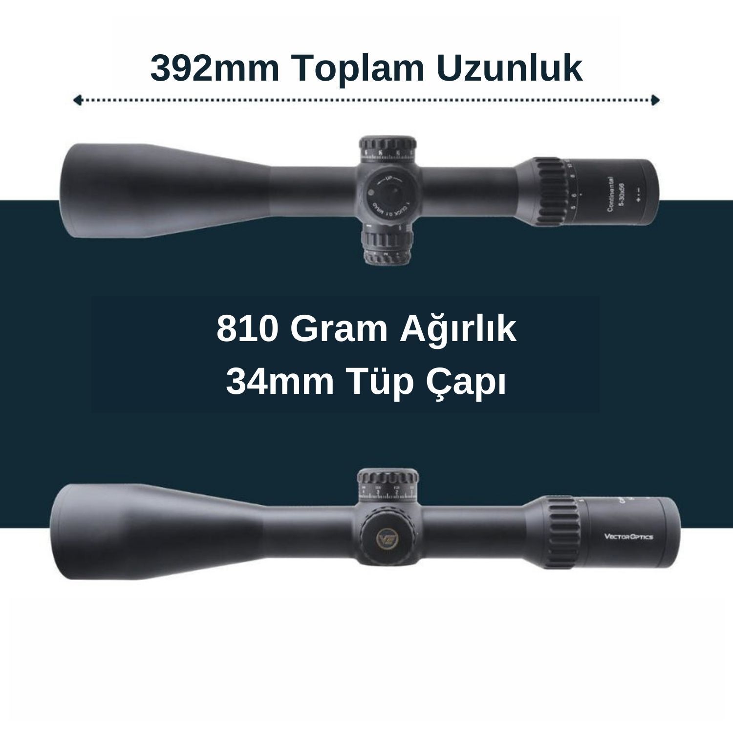 34mm Continental x6 5-30x56 MBR FFP Tüfek Dürbünü 56 mm büyük objektif lens ve 34 mm monotüp gövde, uzun menzilde hassas ayar için maksimum yükselme ve rüzgar ayar aralığı sağlar.