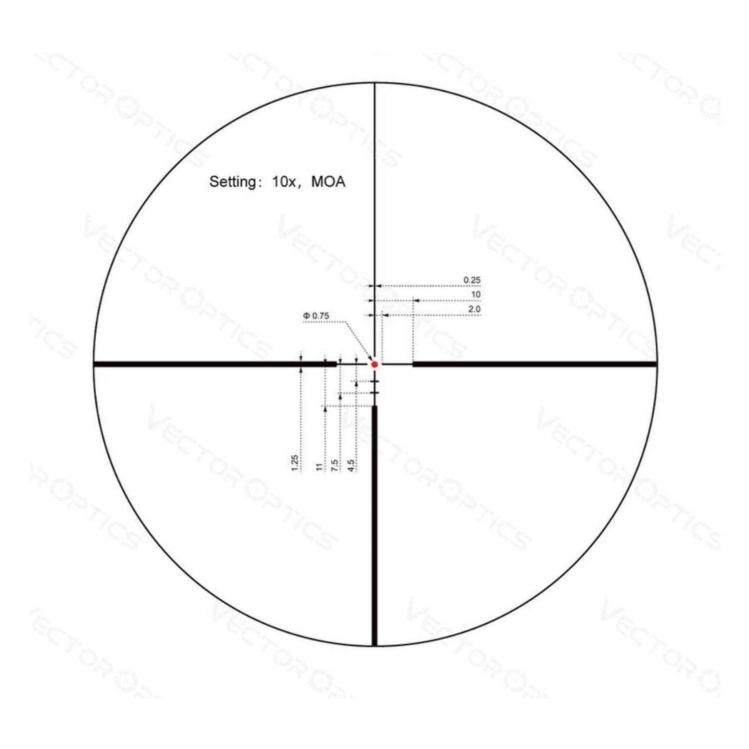 VET-10 BDC Retikül DetaylarıRetikül üzerindeki işaretler, farklı mesafeler için balistik hesaplamalara uygundur ve kolay ayar yapmanızı sağlar. |