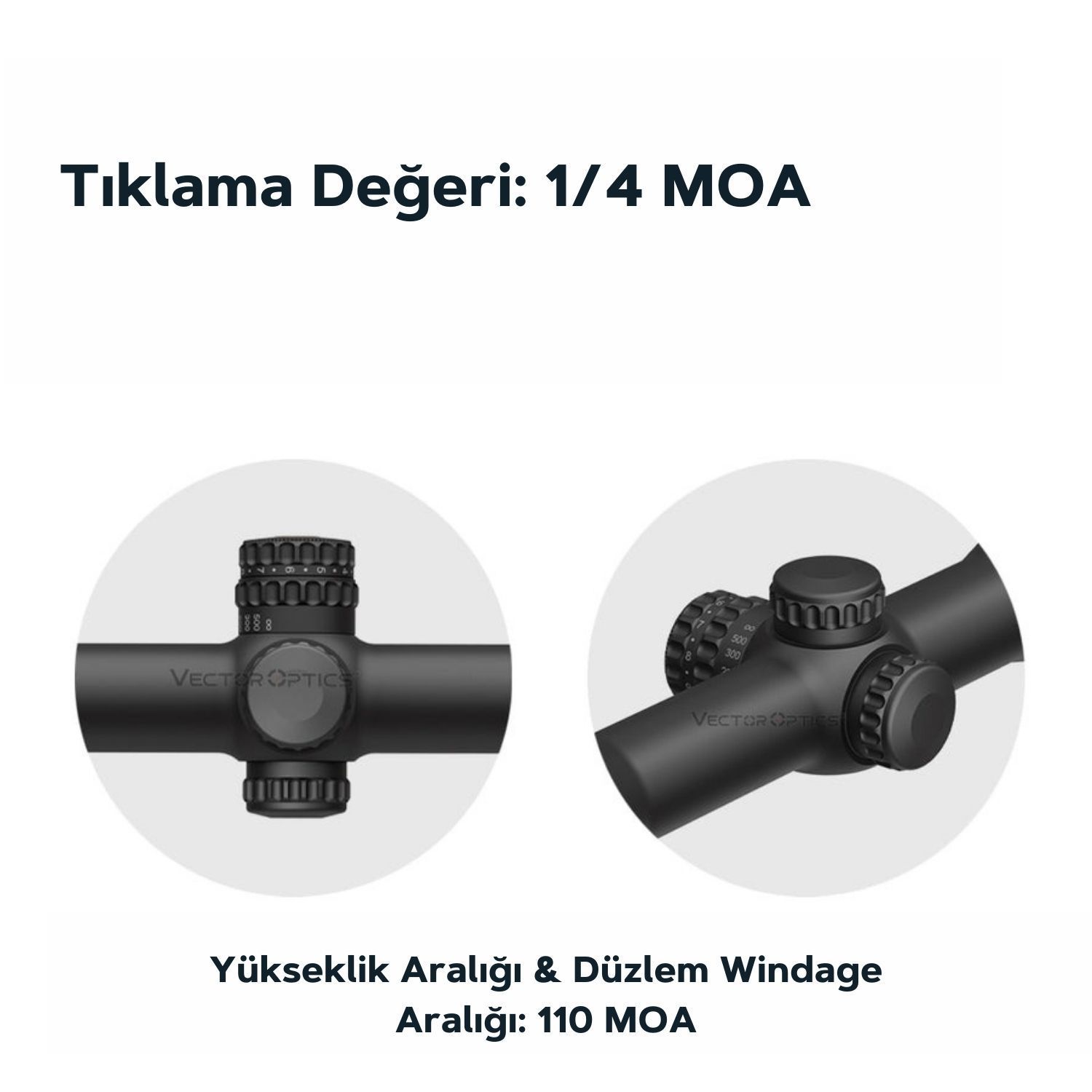 | Tıklama Değeri | 1/4 MOA |