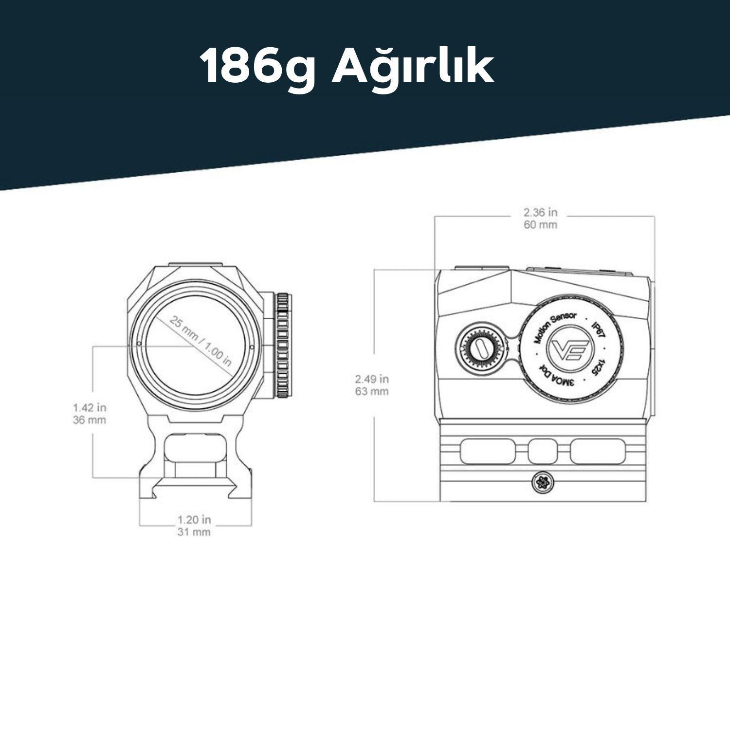 | Ağırlık (Net) | 186 g / 6.6 oz |