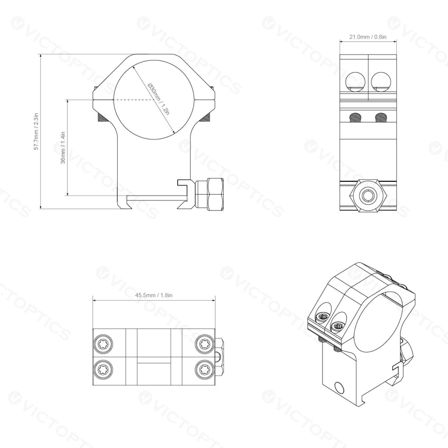 - Orta Profil 36mm Yükseklik, 1.4in (Tabandan Yüzük Merkezine kadar)