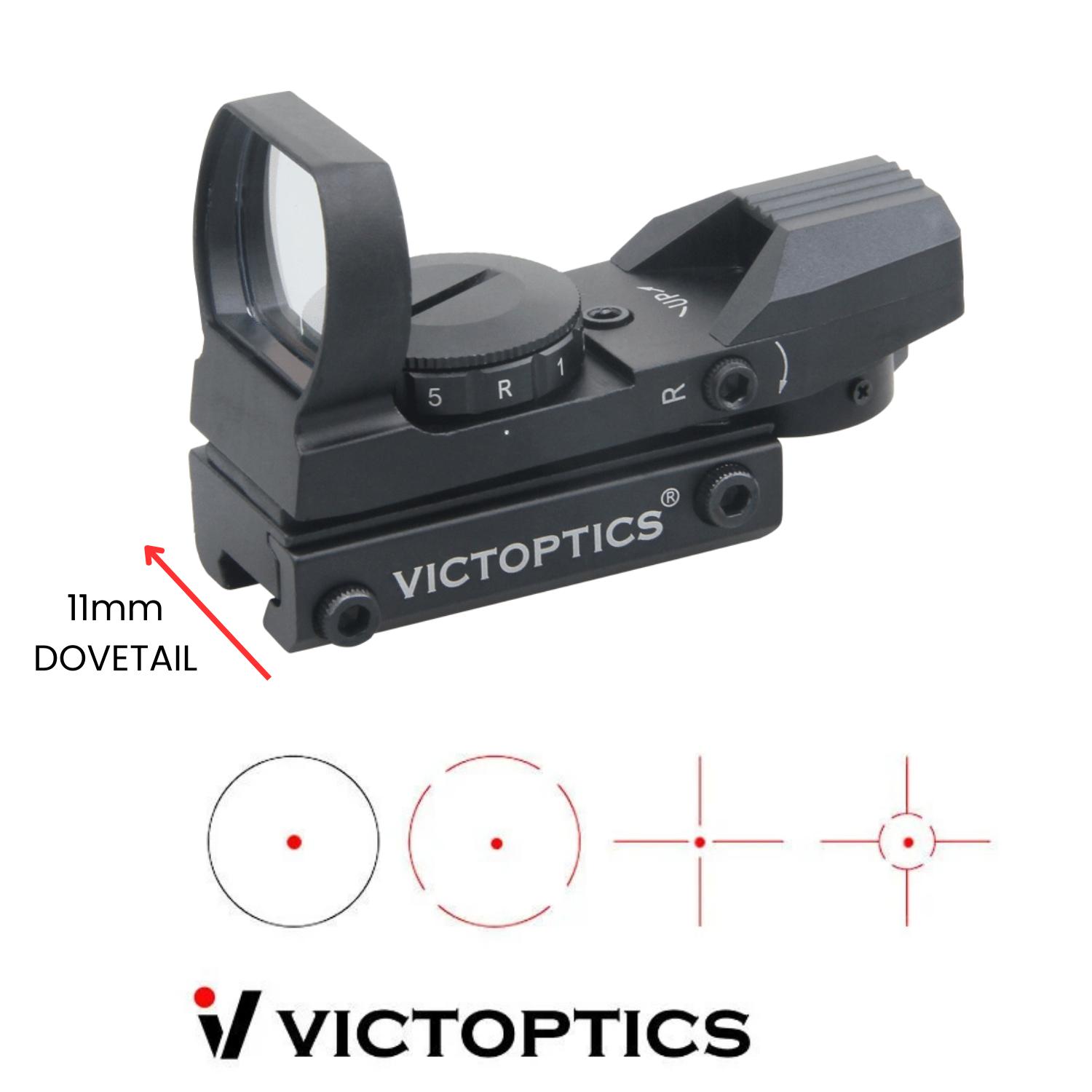Victoptics Red Dot Multi Reticles OptionsBu ürün, çoklu retikül seçenekleri sunan bir kırmızı nokta nişangahıdır. Yakın ve uzak mesafelerde optimal doğruluk ve hedef tespiti için 4 farklı retikül modeli bulunmaktadır.