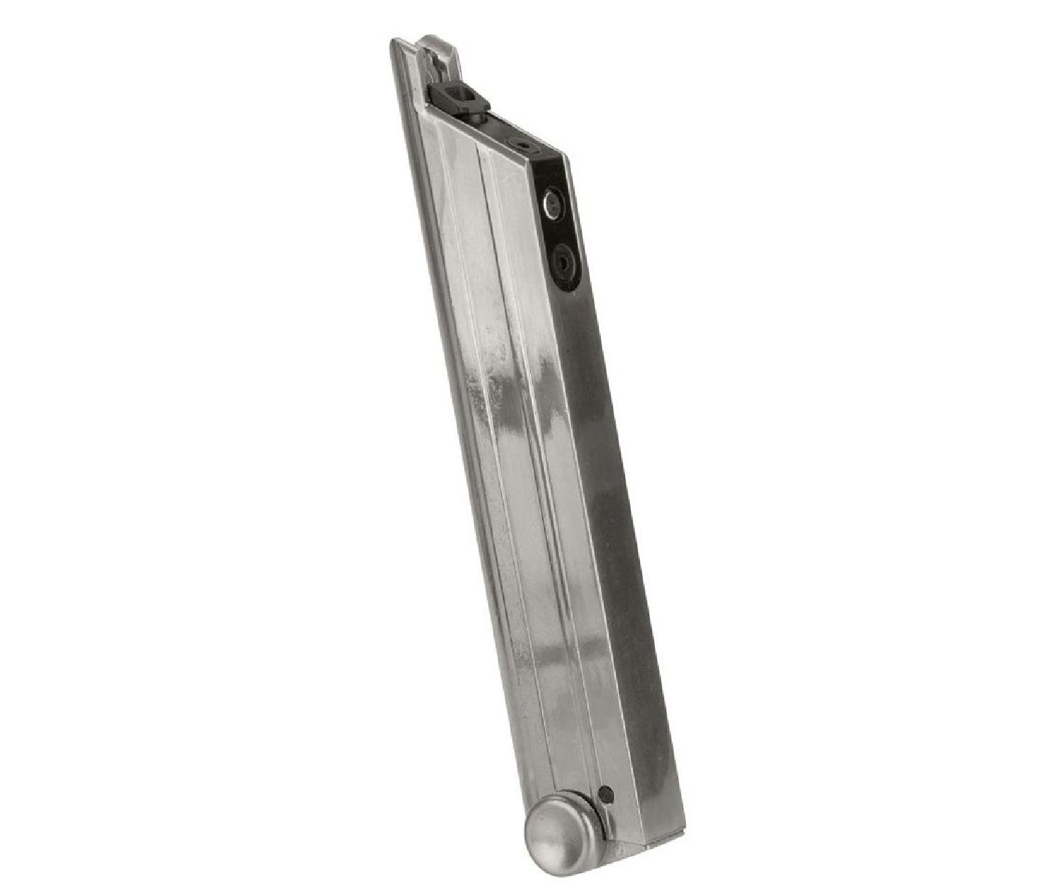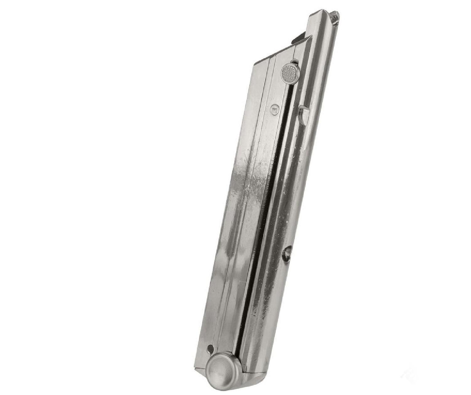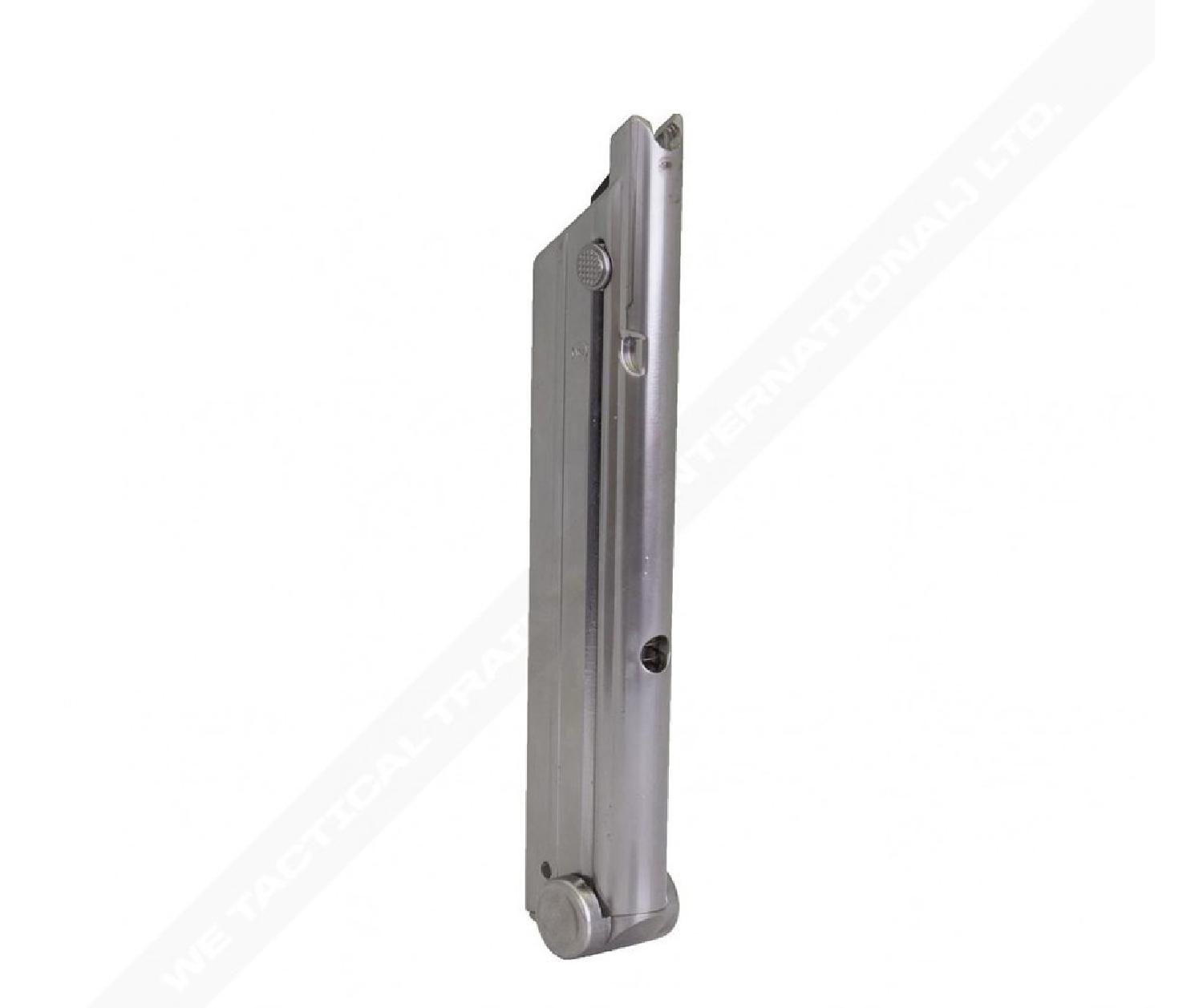 WE Luger P08 Krom GAS Airsoft Tabanca Şarjörü, efsanevi Luger P08 modelinin gazlı versiyonlarını destekleyen, estetik ve işlevselliği bir araya getiren bir yedek şarjördür.